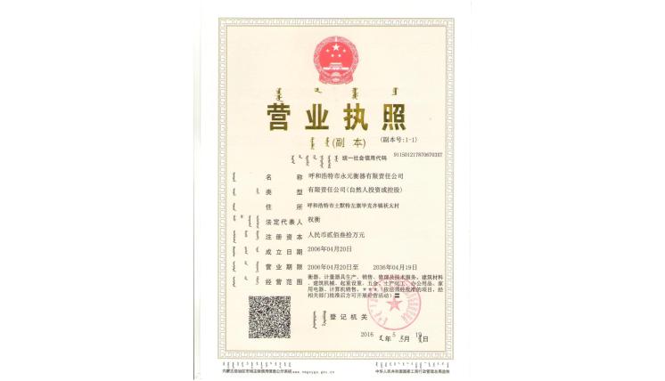 中國(guó)衡器協(xié)會(huì)會(huì)員證書